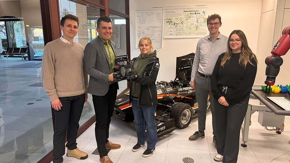 Next step in the collaboration between the UPBracing Team and our “Product Creation” workgroup headed by Prof. Dr.-Ing. Iris Gräßler: Emma Vullhorst and Emelie Becker presented a 3D-printed mini model of the current #PX425 race car to Dr.-Ing. Jens Pottebaum, Felix Vollenkemper, and Marcel Niemeyer. For what purpose? The PX-Mini will serve as a tangible example of complex products in courses, workshops, and research projects in the future. For…